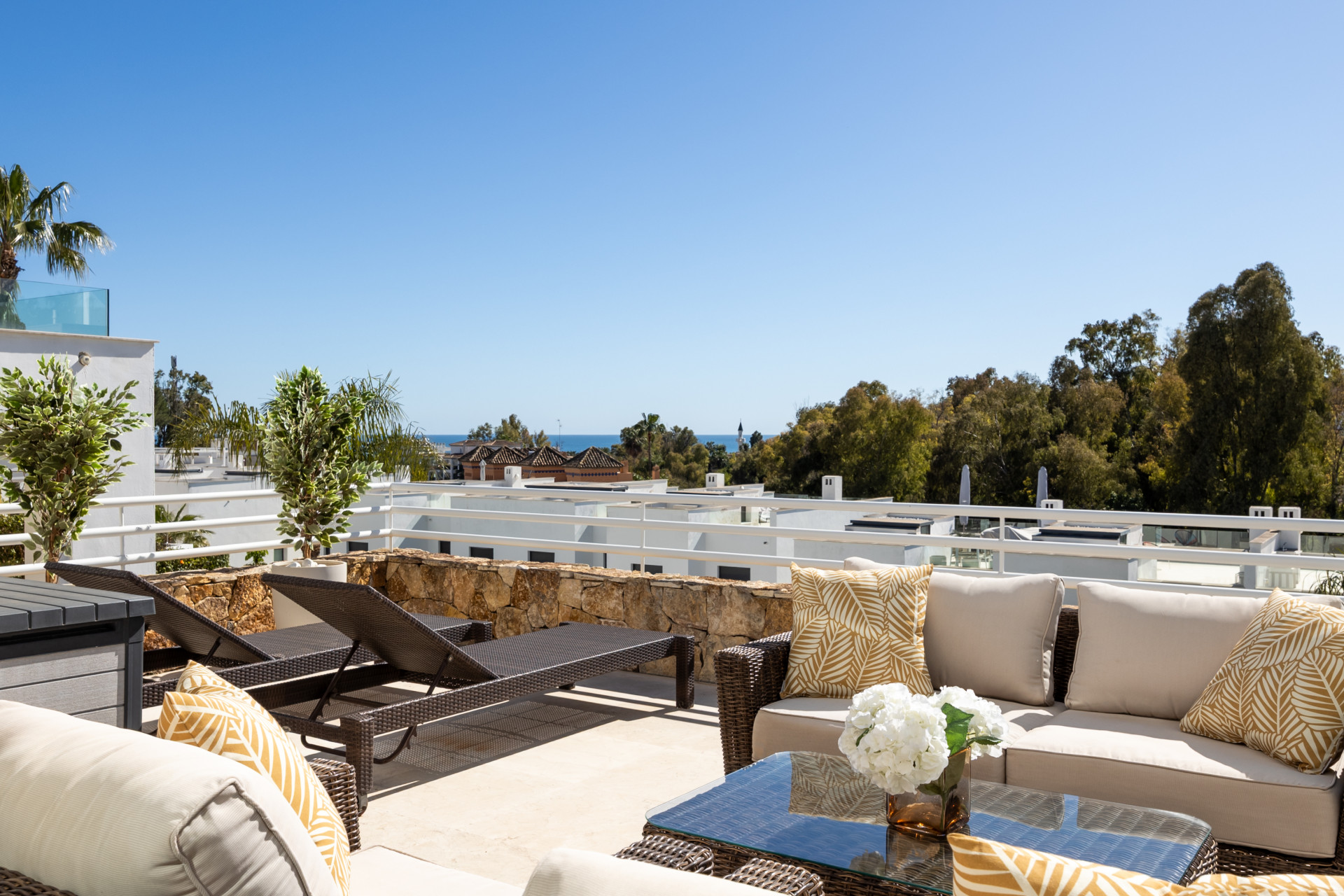 This spacious and light-filled 3-bedroom, 3-bathroom townhouse offers a rare combination of generous interior space, stunning views, and outdoor living in one of Marbella’s most sought-after areas—just minutes from Puerto Banús.