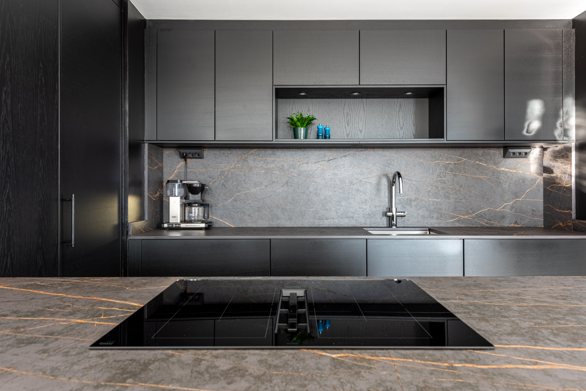 The open-plan kitchen and living area is designed in an elegant Scandinavian style, with clean lines, plenty of natural light, and a seamless flow between spaces – ideal for both relaxing and socializing. The Ballingslöv kitchen is equipped with high-quality Siemens appliances and features an integrated water filter that provides cold, still, and sparkling water.