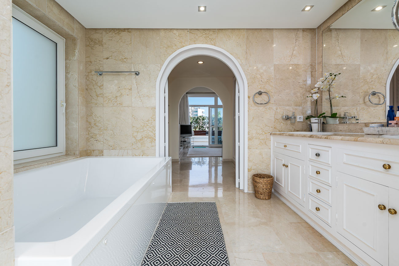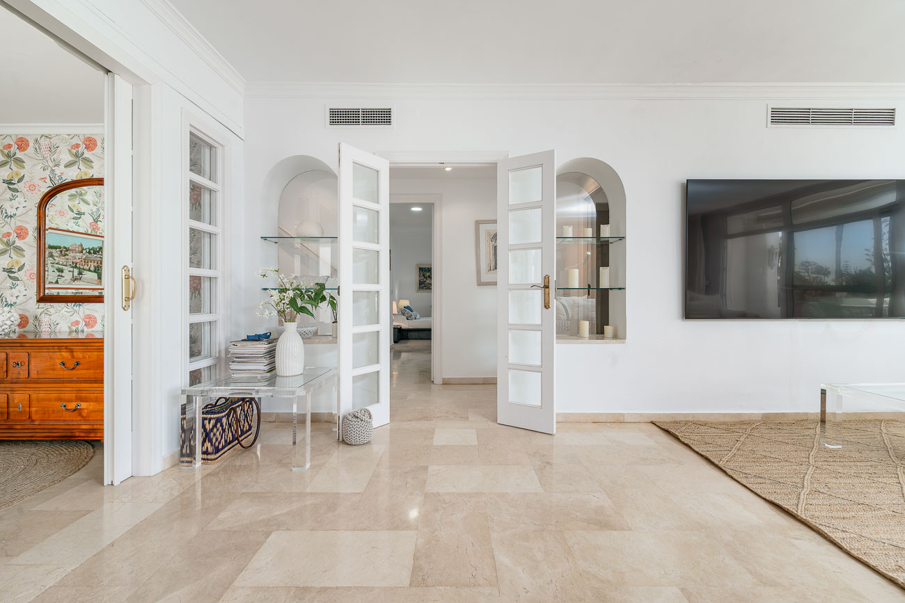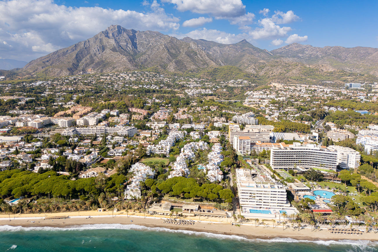 Nur 2 Gehminuten vom Strand und der Promenade entfernt und in unmittelbarer Nähe zu Marbellas drei luxuriösesten Hotels – Don Pepe Gran Meliá, Marbella Club und Puente Romano.