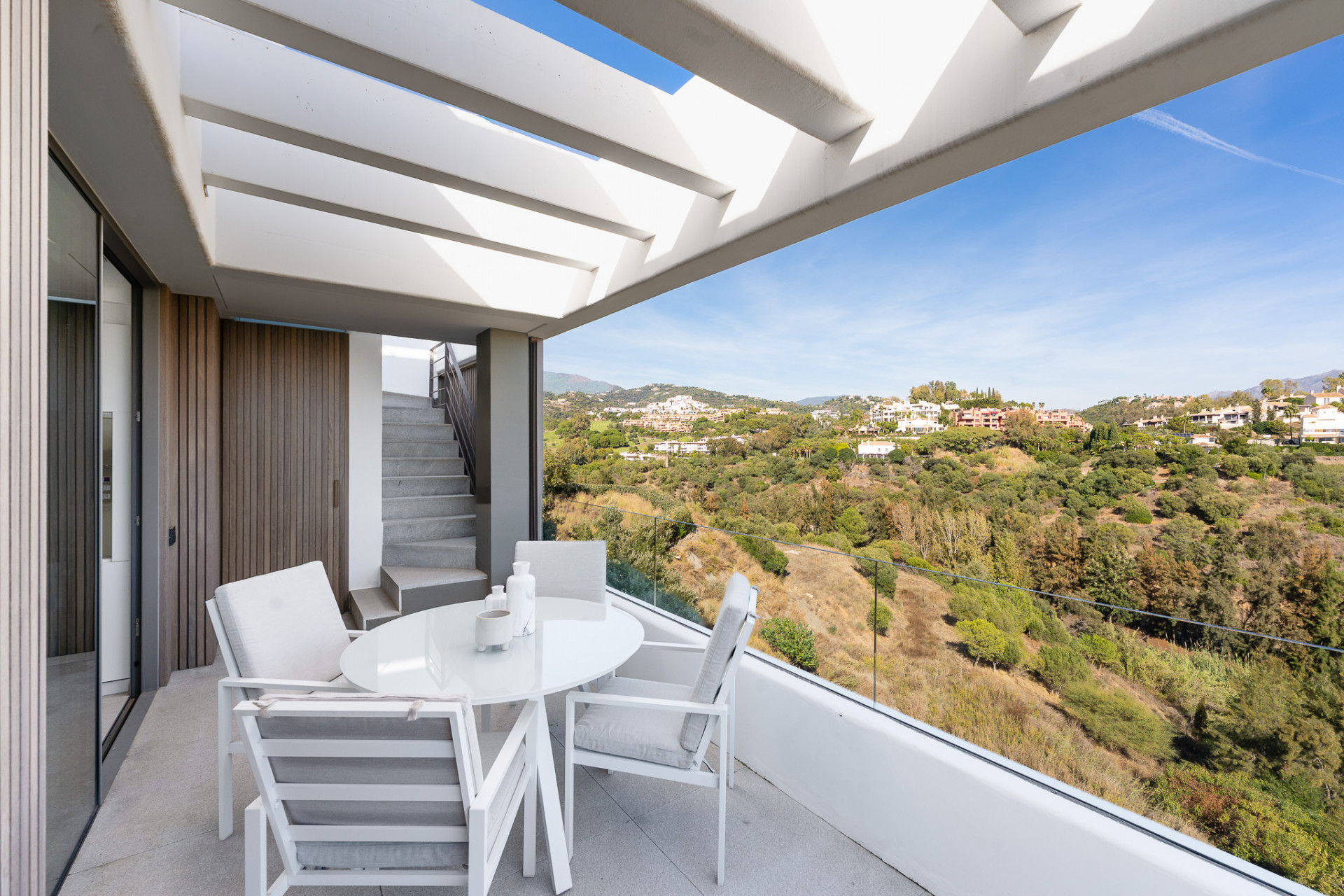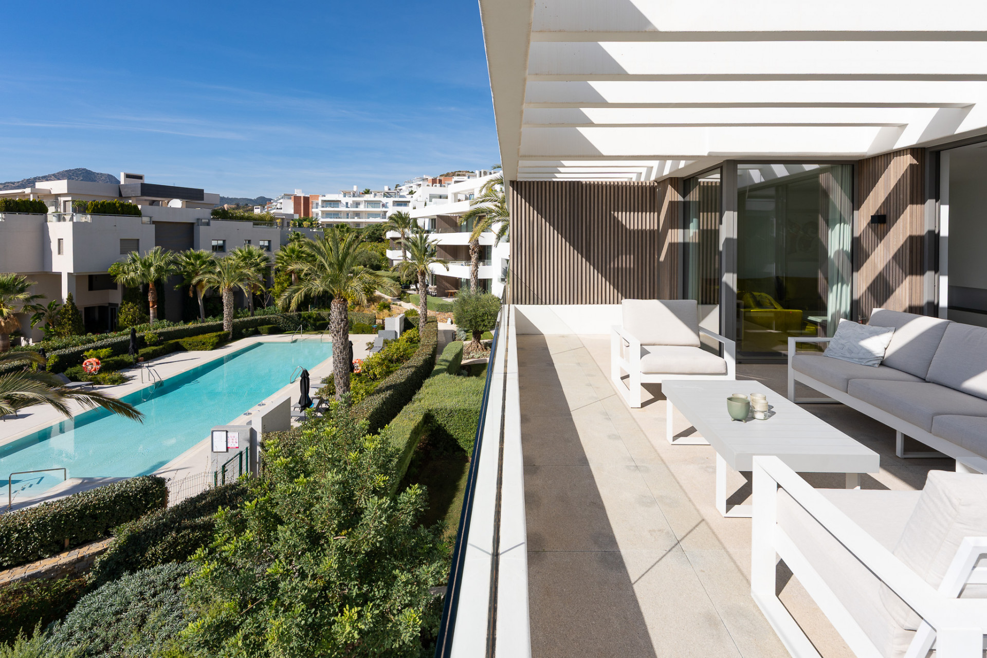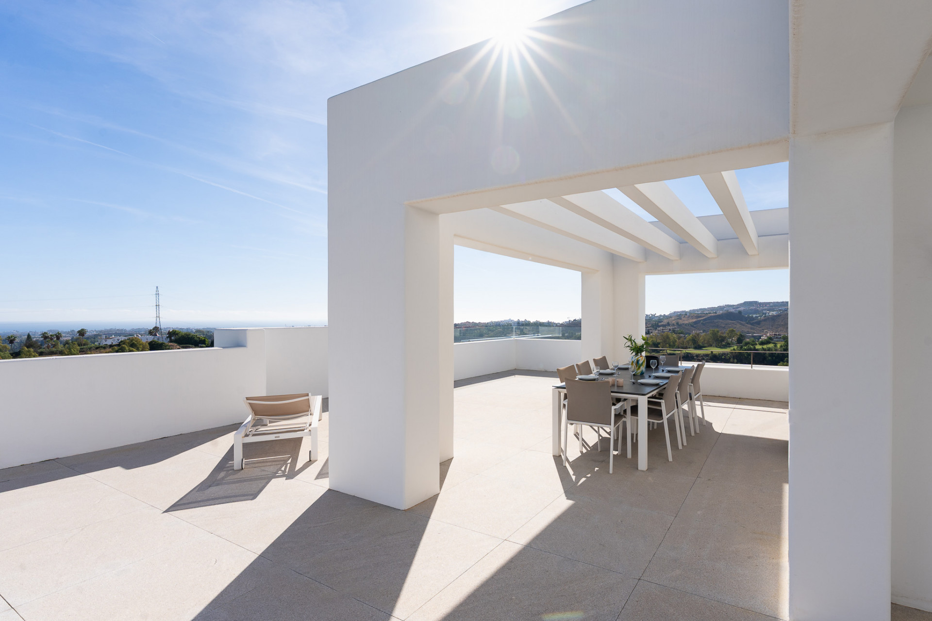 Dieses exklusive Penthouse im 2. Obergeschoss vereint modernes Design mit höchstem Wohnkomfort. Bodentiefe Fenster, Fußbodenheizung und ein offenes Raumkonzept schaffen ein lichtdurchflutetes Ambiente, das Innen- und Außenbereiche elegant verschmelzen lässt. Die Boutique-Anlage mit nur 24 Einheiten besticht durch ihre privilegierte Südwestlage und bietet ein beeindruckendes Panorama auf Meer und Berge. Harmonisch angelegte Gärten des französischen Landschaftsarchitekten Mathieu Lèbre unterstreichen die außergewöhnliche Architektur. Ein luxuriöser Indoor-Spa mit Fitnessbereich sowie zwei Pools sorgen für ganzjährigen Komfort. Golfenthusiasten finden in unmittelbarer Nähe eine herausragende Auswahl an Spitzenplätzen.