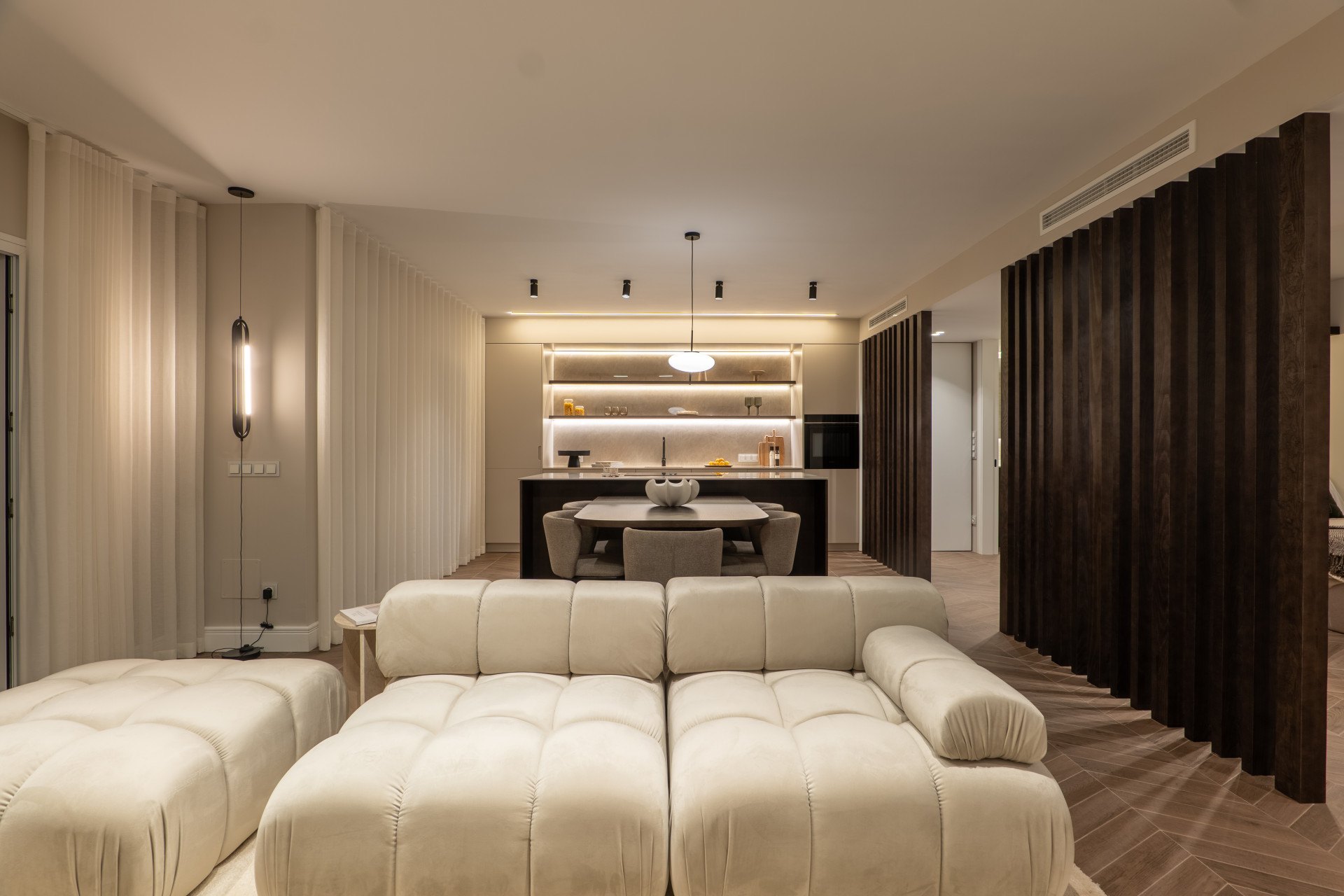 Dieses stilvoll renovierte, nach Süden ausgerichtete Penthouse bietet eine perfekte Mischung aus modernem Design, hochwertigen Materialien und eine ruhige Lage in einer exklusiven Wohnanlage von nur 16 Wohnungen. Das Anwesen verfügt über drei Schlafzimmer und zwei elegant gestaltete Badezimmer, beide mit Fußbodenheizung ausgestattet, um einen ganzjährigen Komfort zu gewährleisten. Die jüngste Renovierung wurde zu einem außergewöhnlichen Standard abgeschlossen, zeigt eine maßgeschneiderte Küche, benutzerdefinierte Zimmerei im gesamten Gebäude und ein fortschrittliches Klimasystem der Air Zone.