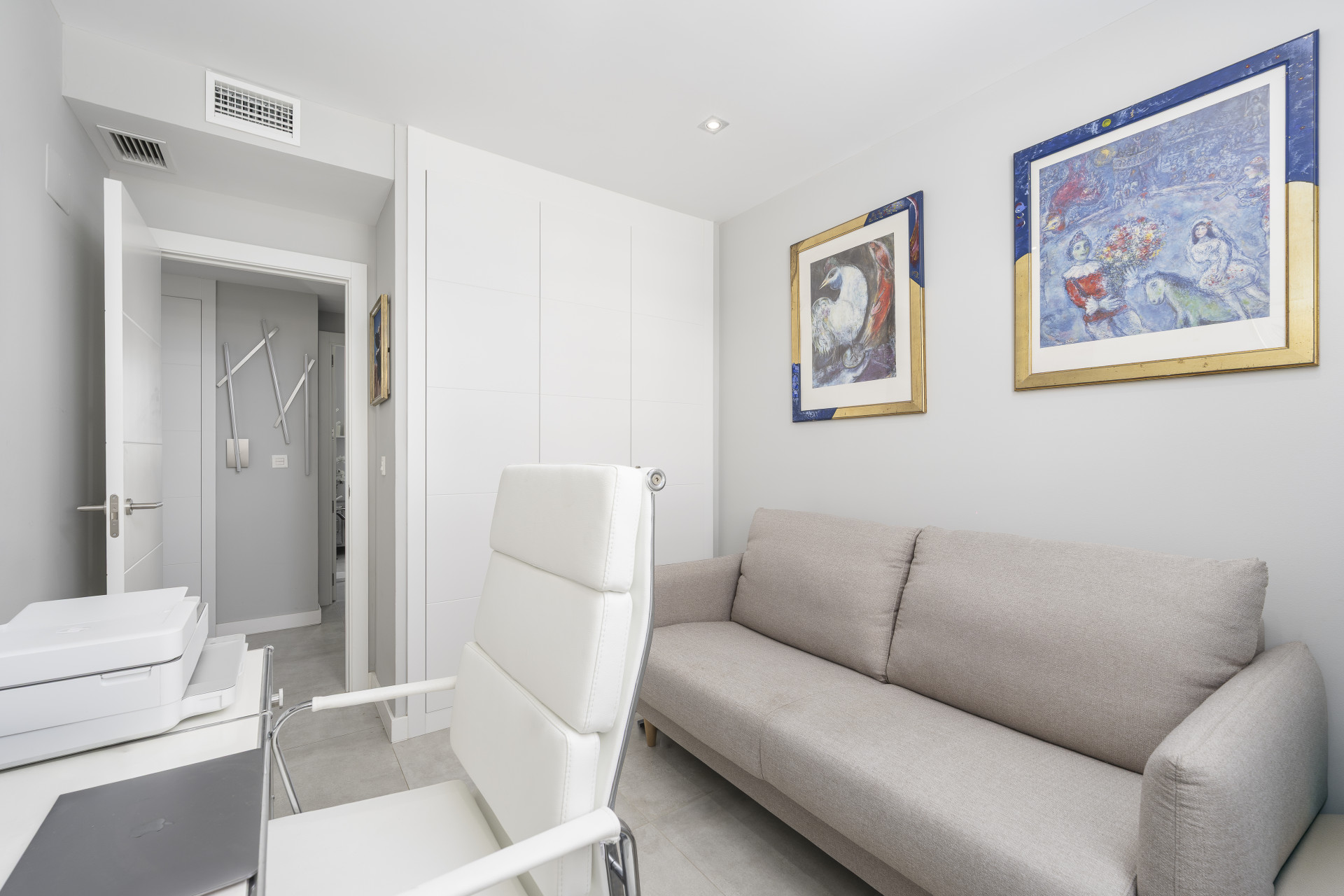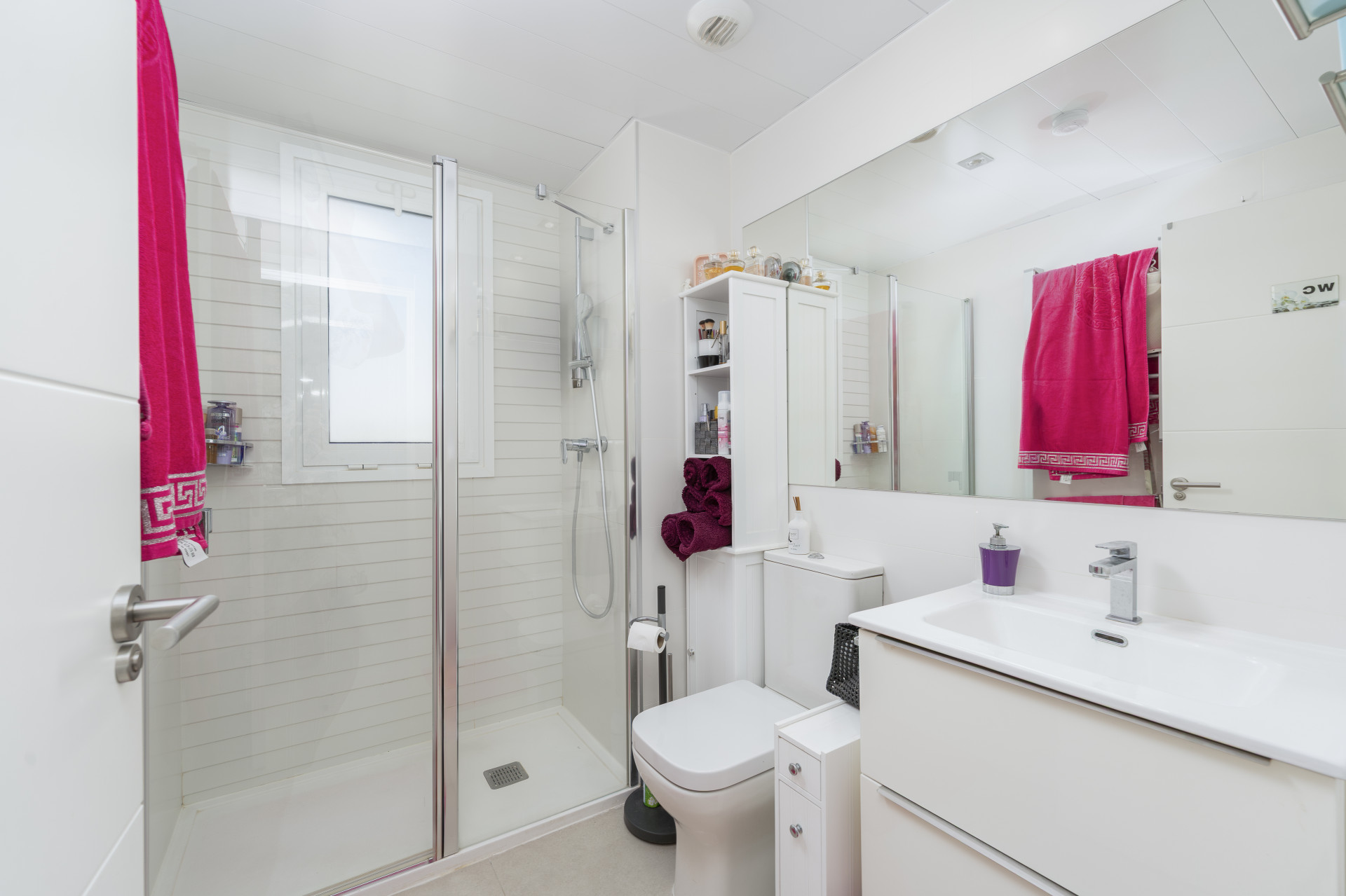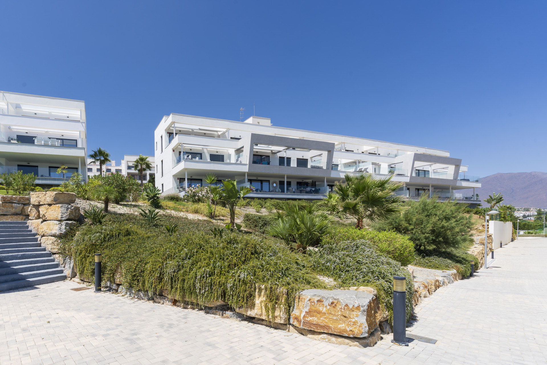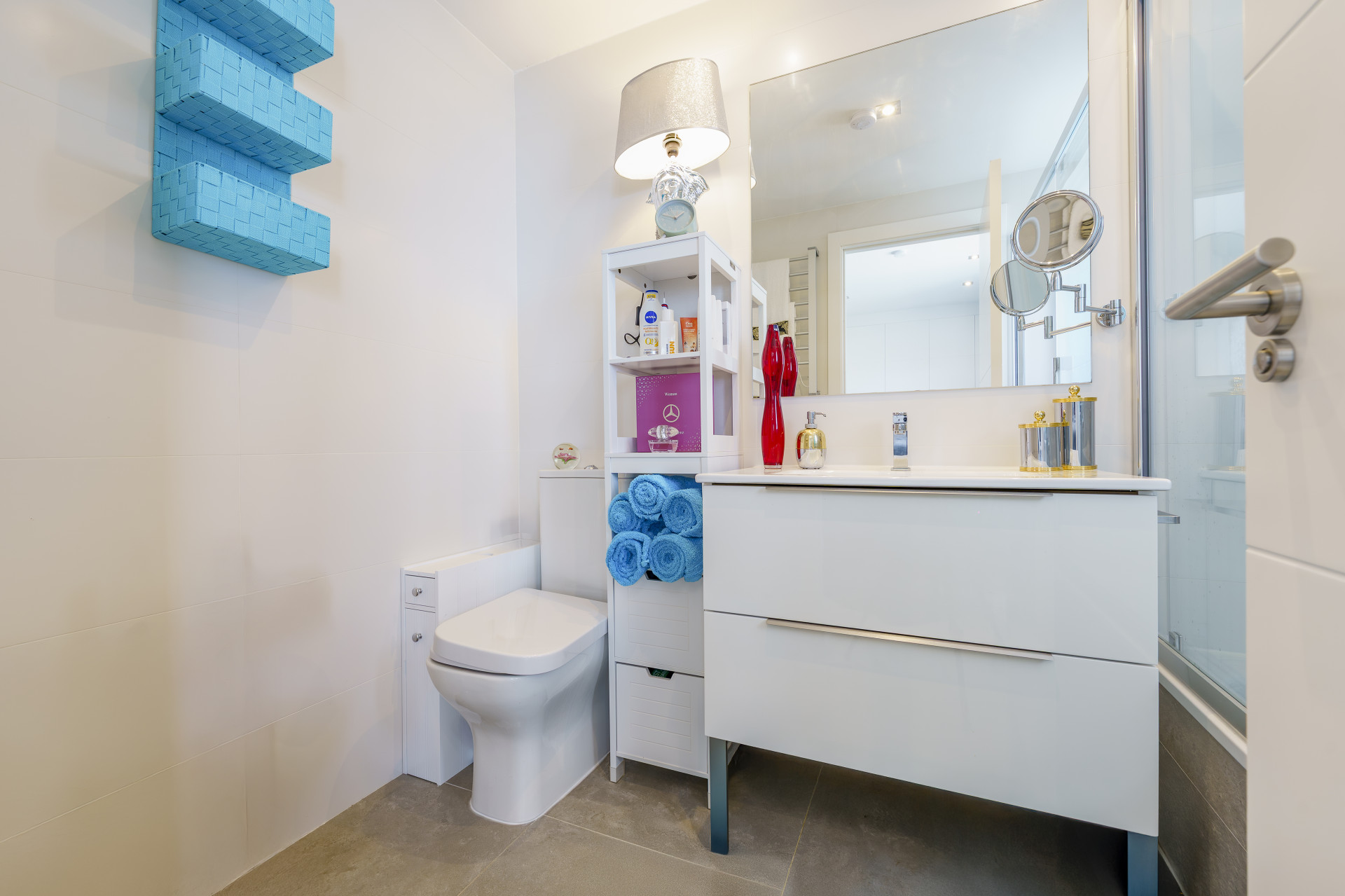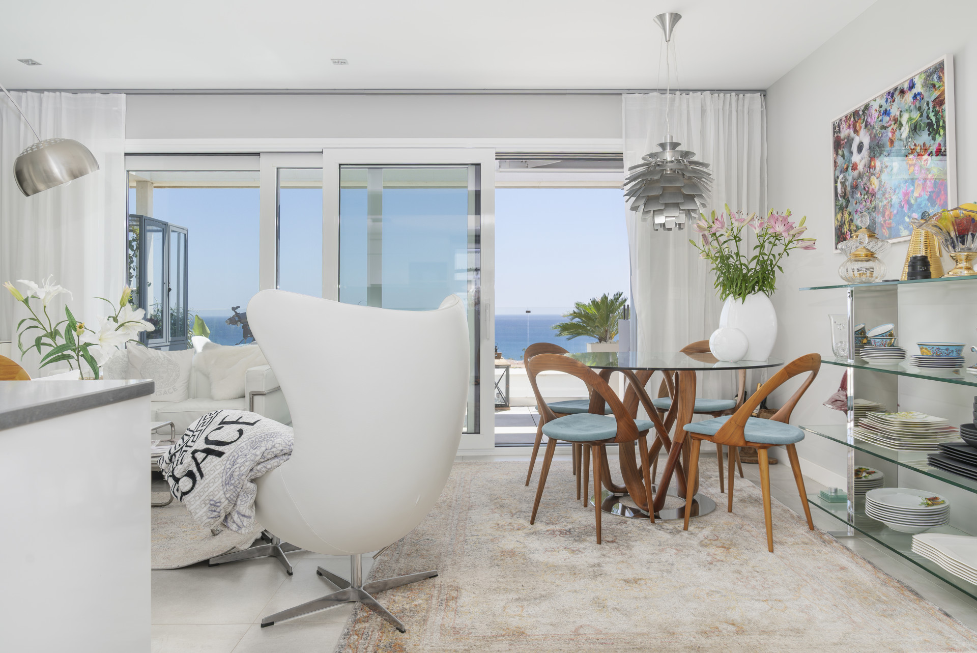 Das Hauptschlafzimmer verfügt über ein Bad en suite, große Einbauschränke sowie direkten Zugang zur Terrasse – so beginnen Sie den Tag mit Meerblick und frischer Brise. Das zweite Schlafzimmer liegt gegenüber und wird durch ein weiteres modernes Badezimmer ergänzt. Beide Bäder überzeugen durch elegante Armaturen und zeitgemäße Ausstattung.