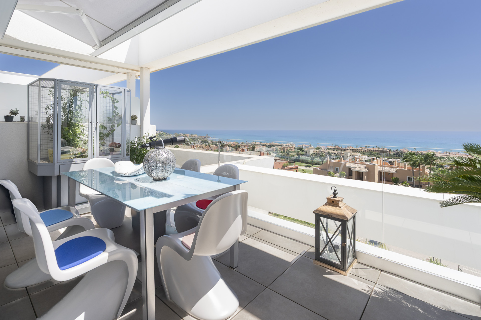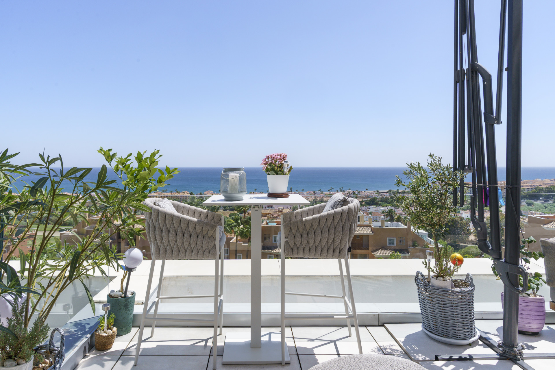 Wir freuen uns, Ihnen ein exklusives Penthaus mit zwei Schlafzimmern und zwei Bädern in der renommierten Wohnanlage Celere Dona Julia in Casares präsentieren zu dürfen. Diese Immobilie verbindet modernen Wohnkomfort, stilvolles Design und einen atemberaubenden Panoramablick auf das Mittelmeer – die perfekte Symbiose aus Luxus und mediterranem Lebensgefühl.