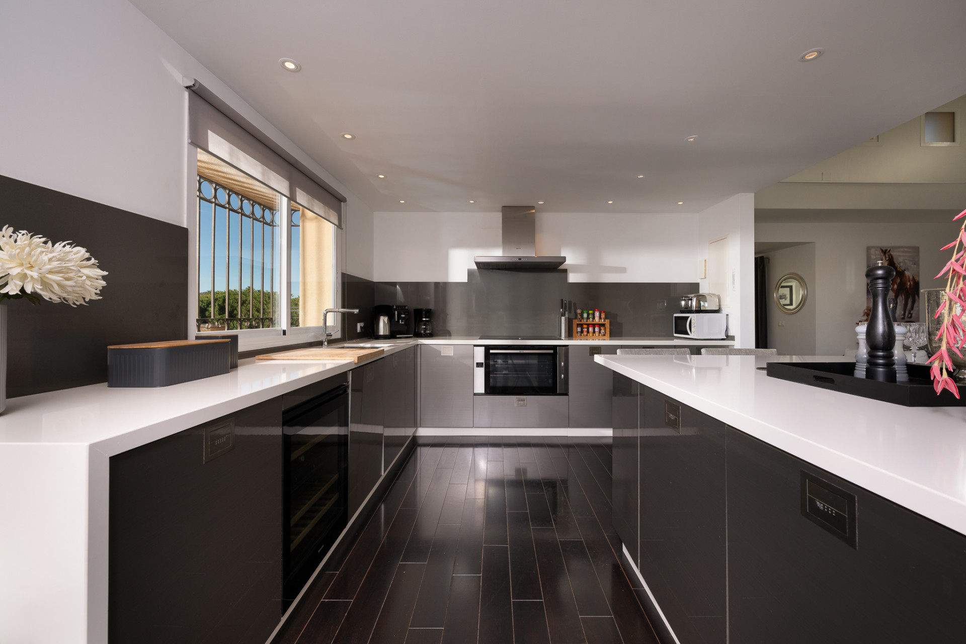 Zwei der Schlafzimmer mit Bädern befinden sich ebenfalls auf dieser Ebene. Jedes Zimmer ist mit maßgefertigten Einbauschränken mit Holzinnenausstattung ausgestattet, die Stil und Funktionalität perfekt verbinden. Die Badezimmer verfügen über automatische, solarbetriebene Lüftung, die Komfort und Nachhaltigkeit garantiert.