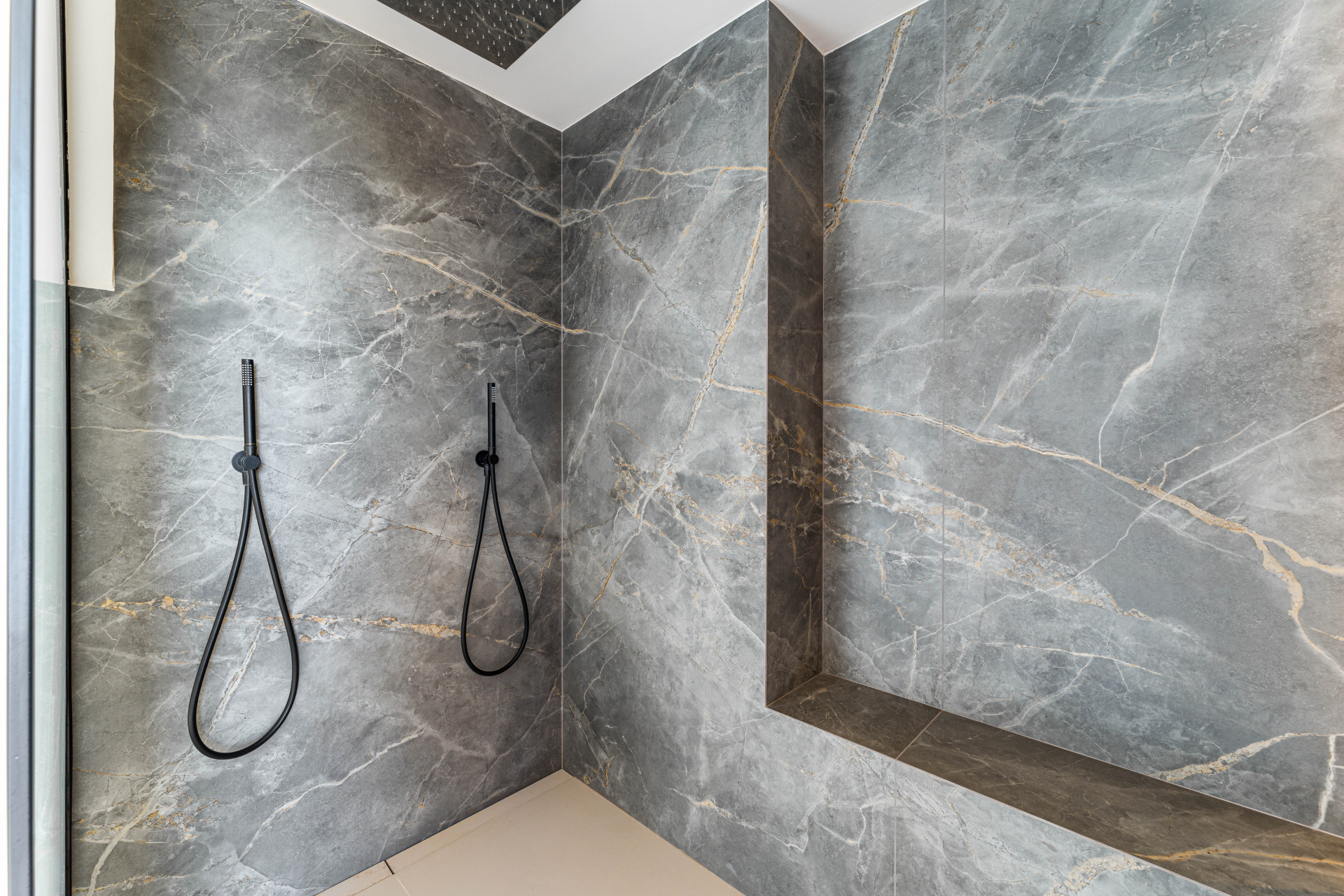 Die Immobilie ist auf zwei Ebenen verteilt. Die untere Etage verfügt über drei elegant gestaltete Schlafzimmer, jedes mit eigenem Bad, zusammen mit einer Gästetoilette für zusätzlichen Komfort. Die obere Ebene ist der Master-Suite gewidmet, bietet eine private Terrasse mit einem Jacuzzi und spektakuläre Aussicht, einen ruhigen und luxuriösen Rückzug. Insgesamt bietet das Penthouse vier Schlafzimmer – eine derzeit als Büro genutzt – drei Badezimmer und eine Gästetoilette, sodass es ideal für Familienlebende und Gastgäste ist.