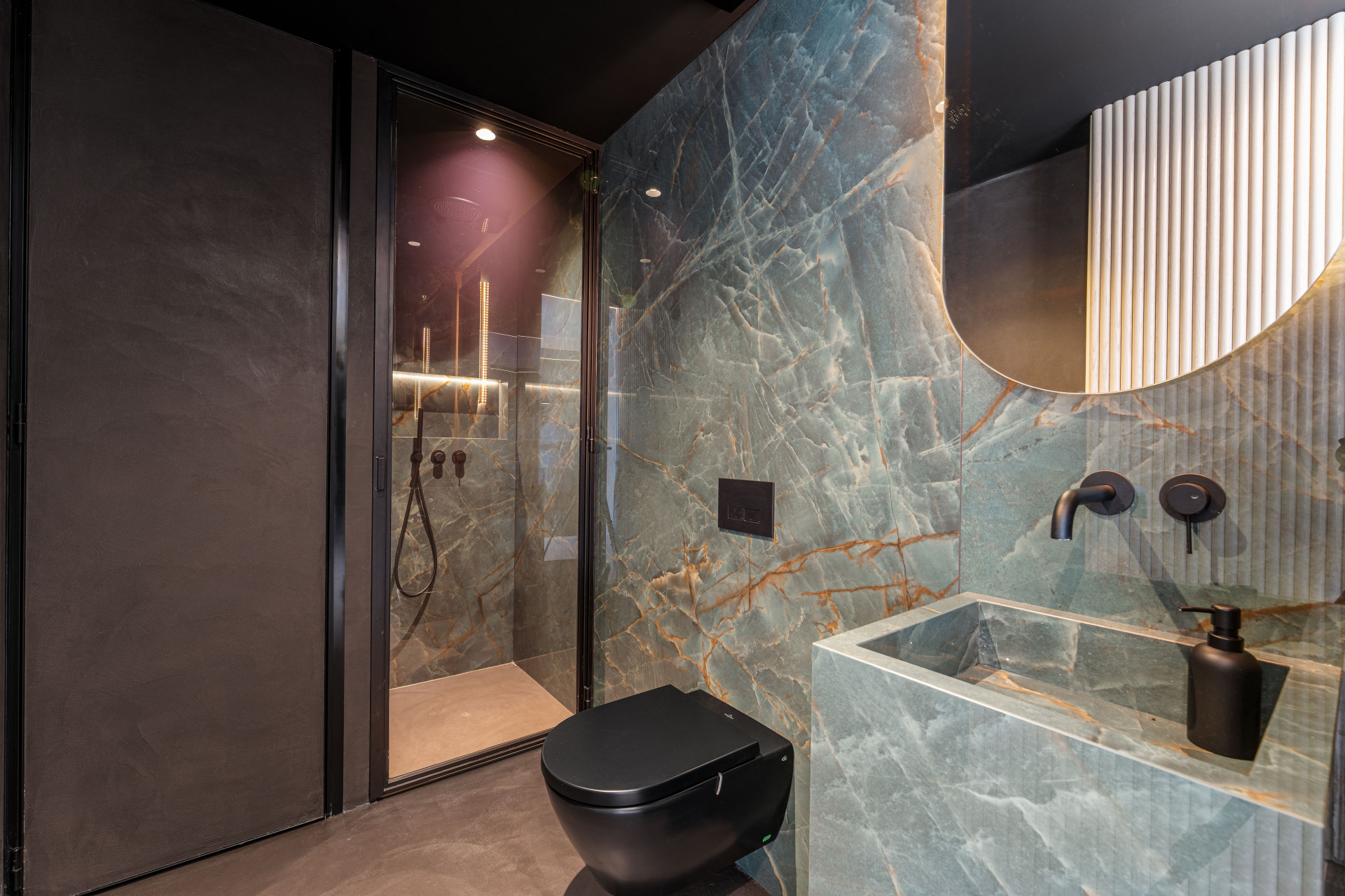 Der offene Wohnbereich verbindet die Lounge, den Essbereich und eine modern ausgestattete Küche mit Gaggenau Geräten nahtlos. Große Glastüren öffnen sich auf geräumige Terrassen, die für das Wohnen im Freien konzipiert sind, perfekt für das Essen im Freien oder einfach die umliegende Landschaft genießen. Ein großzügiger 20m2 Aufbewahrungsraum ergänzt die Funktionalität und sorgt für eine clutterfreie Wohnumgebung.