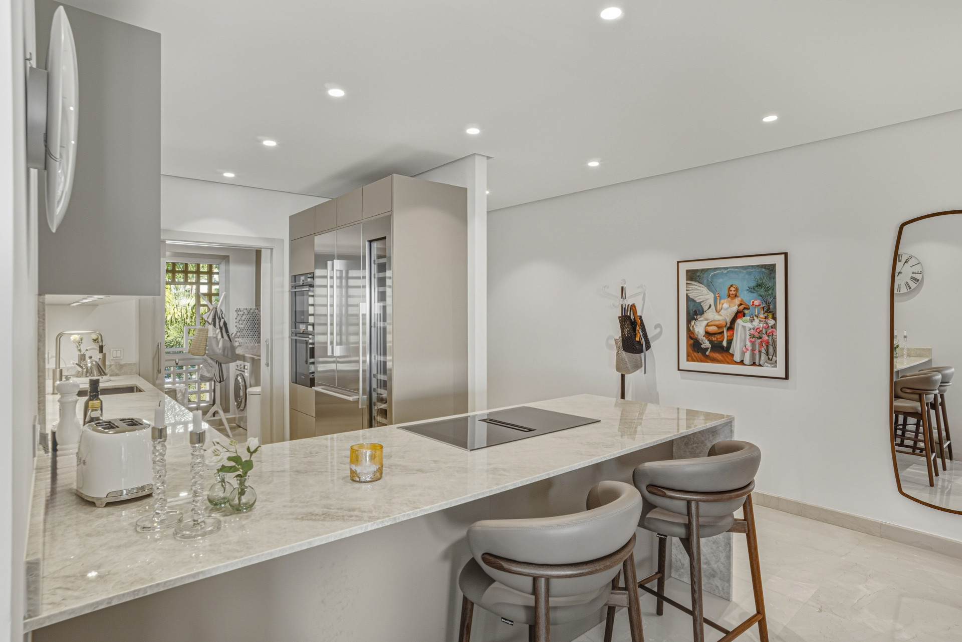 Dieses komplett eingerichtete Penthouse mit zwei Schlafzimmern im renommierten Mansion Club Marbella bietet einen atemberaubenden Panoramablick auf das Mittelmeer und eine üppige Umgebung. Voll modernisiert nach höchsten Standards, verfügt es über helle offene Räume, ein stilvolles Wohnzimmer, das zu einer großen Terrasse führt, und eine elegante, voll ausgestattete Küche. Beide Schlafzimmer umfassen en-suite Badezimmer und Einbauschränke, die Komfort mit modernem Design verbinden. Das Anwesen profitiert von Doppelverglasung und Fußbodenheizung im gesamten Gebäude sowie einem Parkplatz und einem Abstellraum. In einer gated Community mit 24-Stunden-Sicherheit genießen Sie Zugang zu erstklassigen Annehmlichkeiten wie Innen- und Außenpools, einem Fitnessraum, einer Sauna, einem türkischen Bad und wunderschön angelegten tropischen Gärten - nur wenige Minuten vom Strand und dem Puente Romano Resort entfernt.