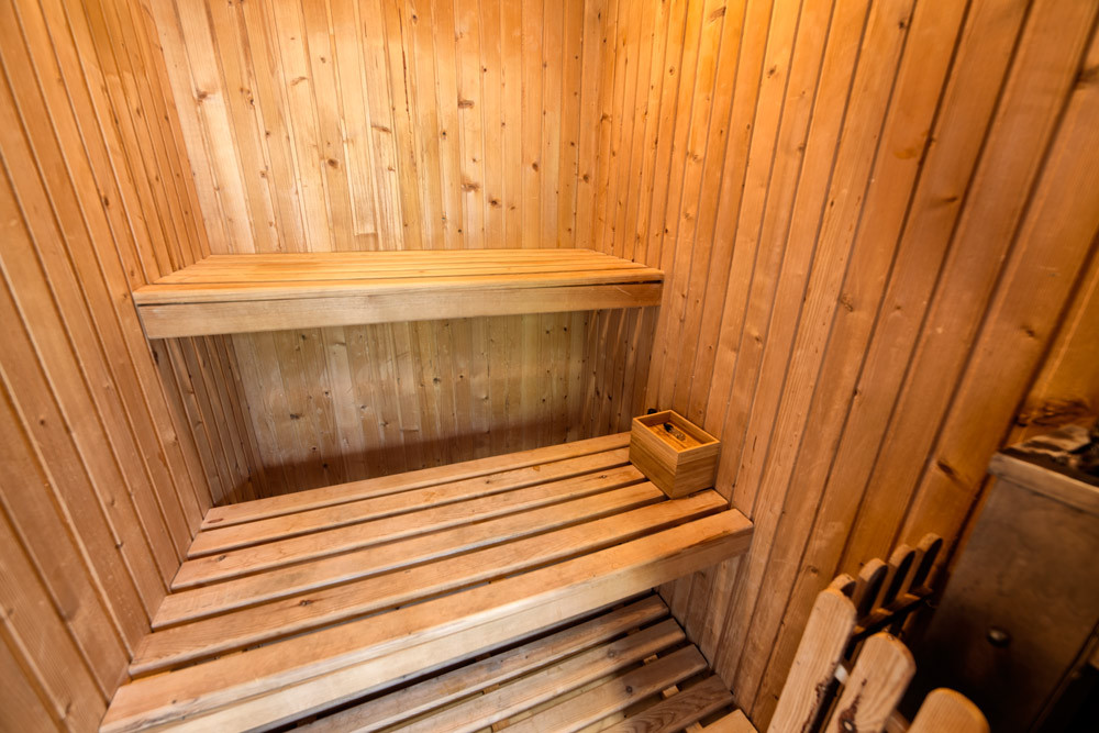 Jacuzzi, Sauna und Fitnessraum, mit der Möglichkeit, den Fitnessraum in ein zusätzliches Schlafzimmer zu verwandeln.