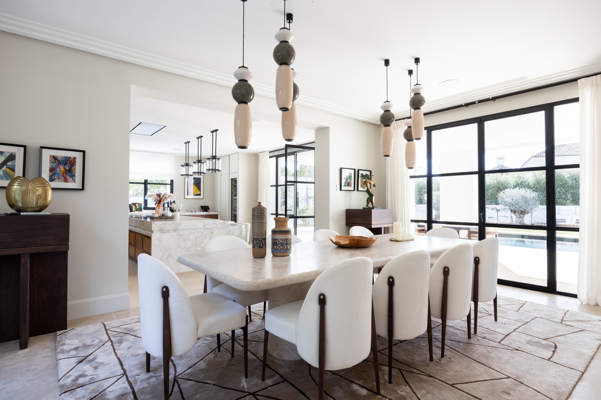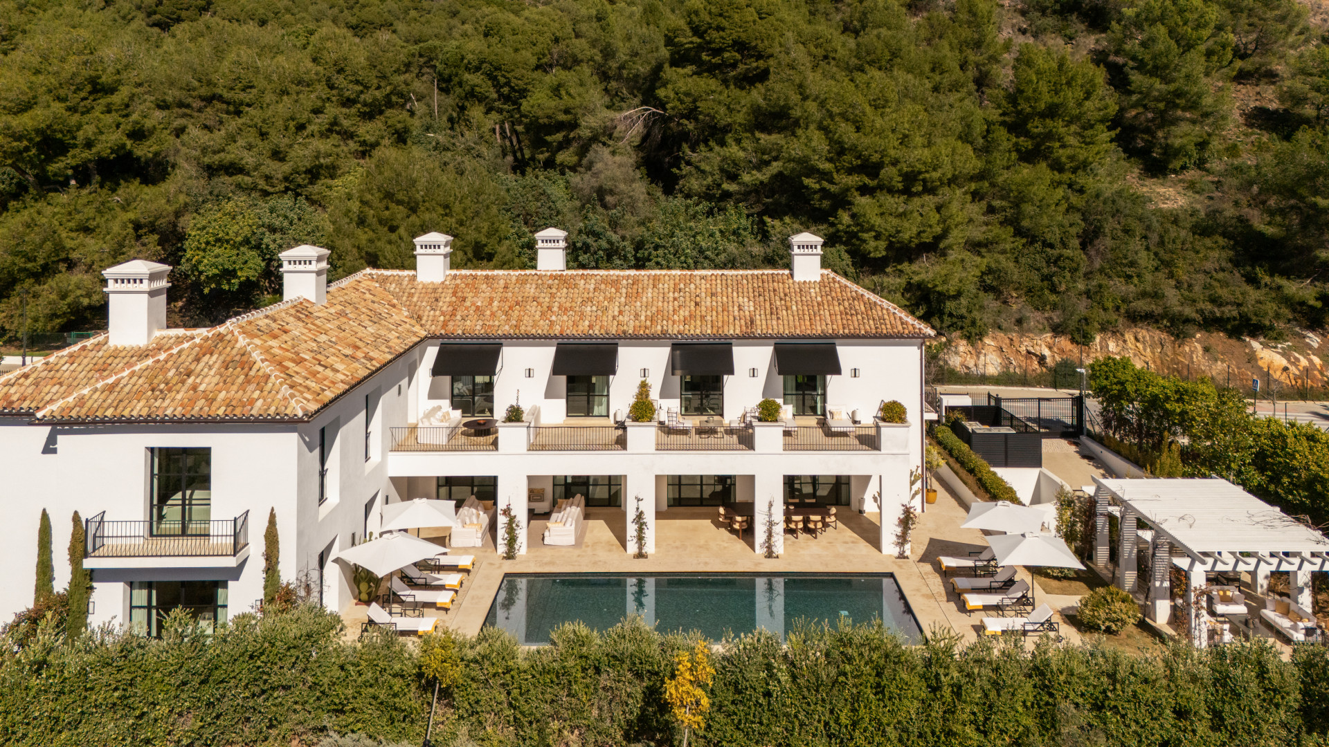 Entworfen vom renommierten Architekten hinter dem exklusiven Finca Cortesín, strahlt die Villa mit ihrer sanften, naturinspirierten Fassadengestaltung Ruhe und Harmonie aus. Die weitläufigen Gärten präsentieren sich als wahre Oase – ideal für stilvolle Empfänge und unvergessliche Momente unter den über 320 Sonnentagen Marbellas. Farbenprächtige Blütenwände rahmen das Anwesen ein, setzen lebendige Akzente und verbinden die natürliche Umgebung harmonisch mit der Architektur.