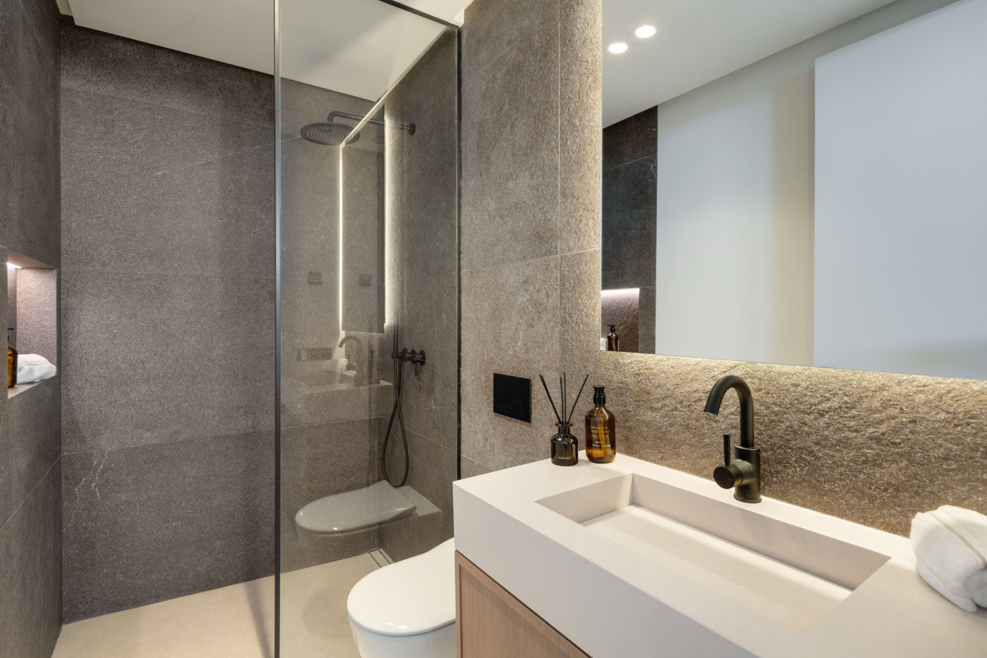 Die Immobilie verfügt über fünf Schlafzimmer, jeweils mit eigenem Bad en Suite, was Bewohnern und Gästen höchste Privatsphäre und Komfort garantiert. Darüber hinaus bietet Villa Ember vier zusätzliche Badezimmer sowie zwei Gäste-WCs, alle ausgestattet mit hochwertigen Armaturen und modernen Oberflächen.