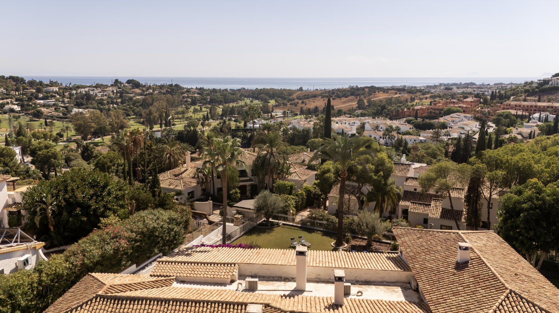 In der begehrten Gegend von Benahavís, oberhalb des El Paraíso Golf, liegt diese elegante Villa mit andalusischem Charme. Auf einem erhöhten Grundstück in einer ruhigen Sackgasse bietet sie Privatsphäre, Meerblick, Ruhe und zugleich eine hervorragende Anbindung an Marbella und Estepona.
