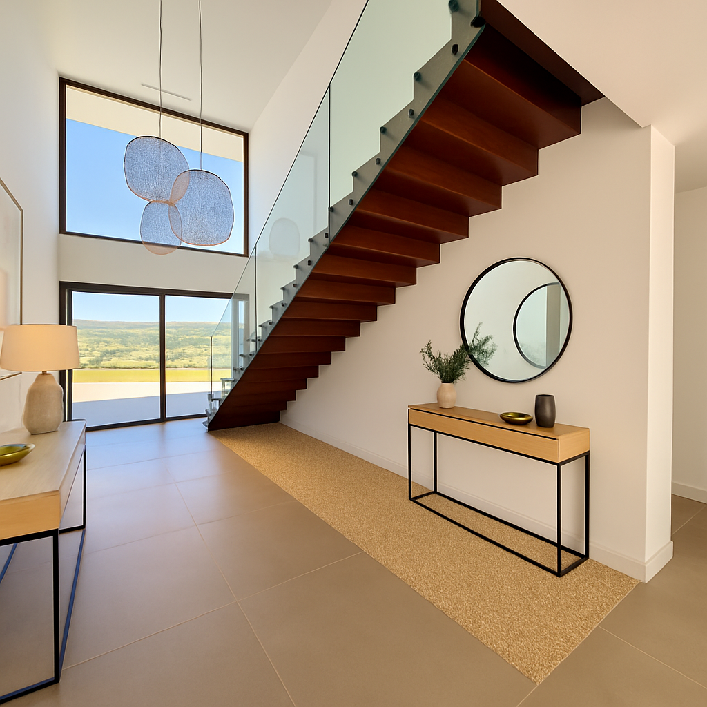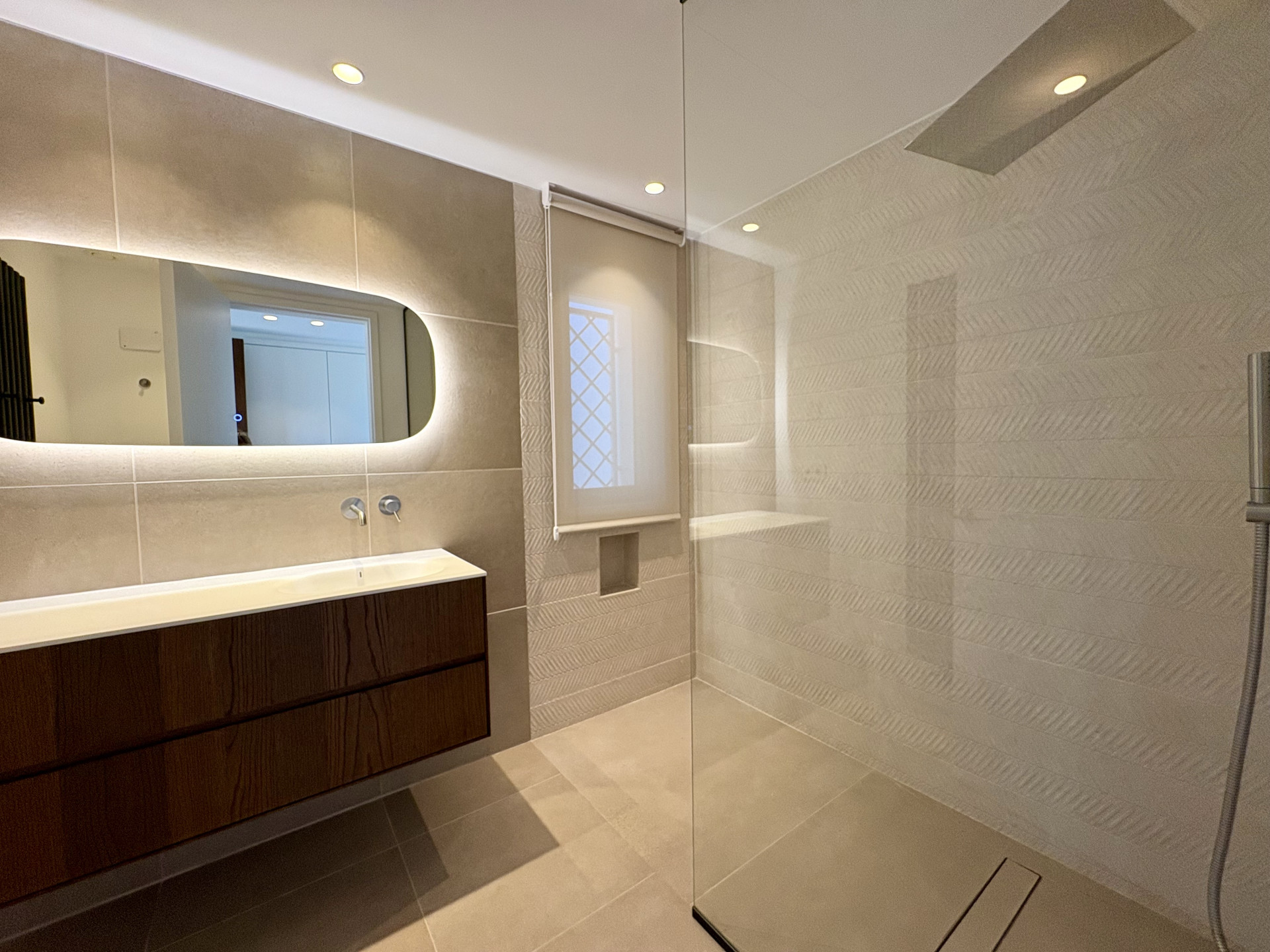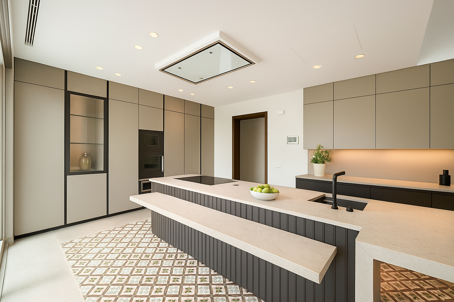 Die Residenz verfügt über fünf großzügige Schlafzimmer-Suiten, die jeweils auf Privatsphäre und Ruhe ausgelegt sind. Im Zentrum des Hauses liegt das helle, weitläufige Wohnzimmer, das nahtlos auf die Terrassen und den gepflegten Garten übergeht und so ein perfektes Zusammenspiel von Innen- und Außenbereichen schafft. Die separate Küche mit Essbereich, ausgestattet mit modernsten Geräten und edlen Materialien, bildet den idealen Rahmen für das Familienleben ebenso wie für die Bewirtung von Gästen.