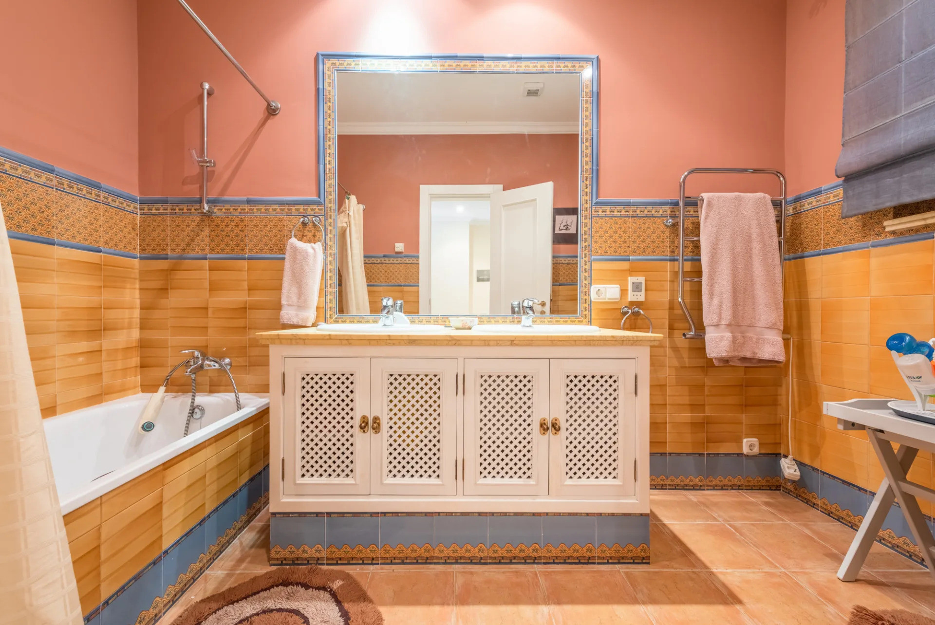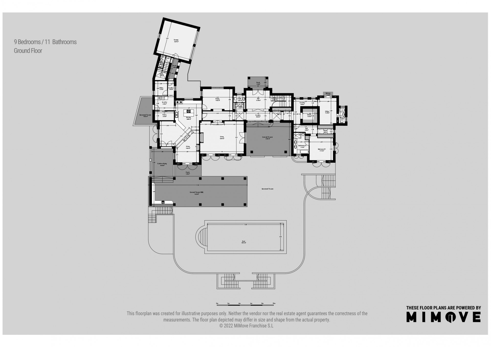 The villa offers nine bedrooms and eleven bathrooms, providing ample accommodation for residents and guests alike. The interior spans 720m² within a total built area of 1,084m², ensuring each room feels airy and bright. The property is equipped with air conditioning, underfloor heating throughout, and a fireplace, ensuring comfort in every season. There is a dedicated guest apartment, a guest room, and an office room for flexible living arrangements, while the basement, storage room, and laundry room add practical convenience. The villa’s unfurnished status presents a blank canvas for personalisation.