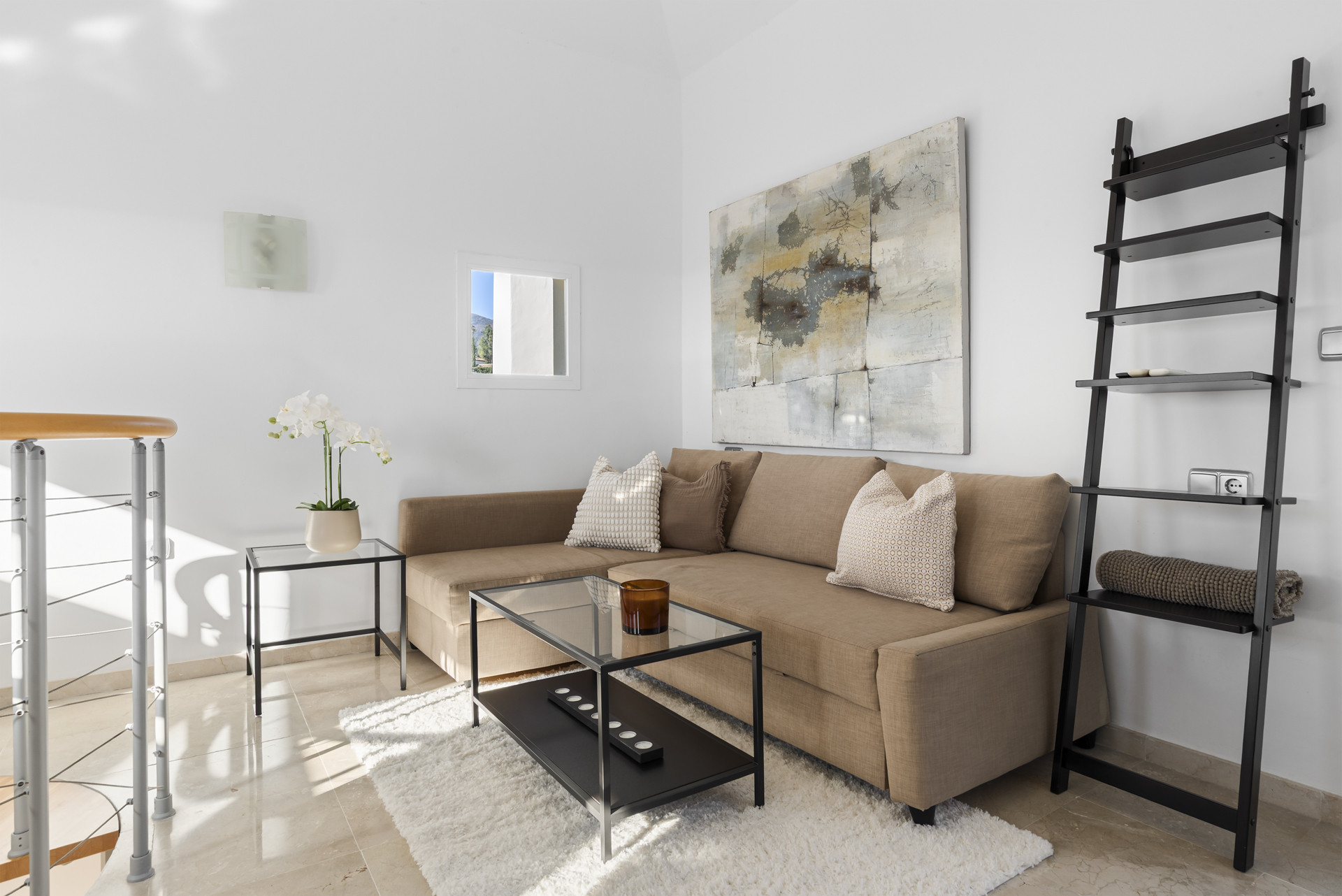 Welcome to this elegant two-level apartment in the sought-after community of Los Arqueros, Benahavís, where modern comfort meets spectacular natural surroundings. This beautifully presented home offers three spacious bedrooms and three stylish bathrooms, providing the perfect blend of functionality and relaxation for both permanent living and holiday stays. Set within a peaceful and well-maintained residential area, the property enjoys abundant natural light, open interiors, and stunning views that stretch across the lush landscape towards the Mediterranean Sea.