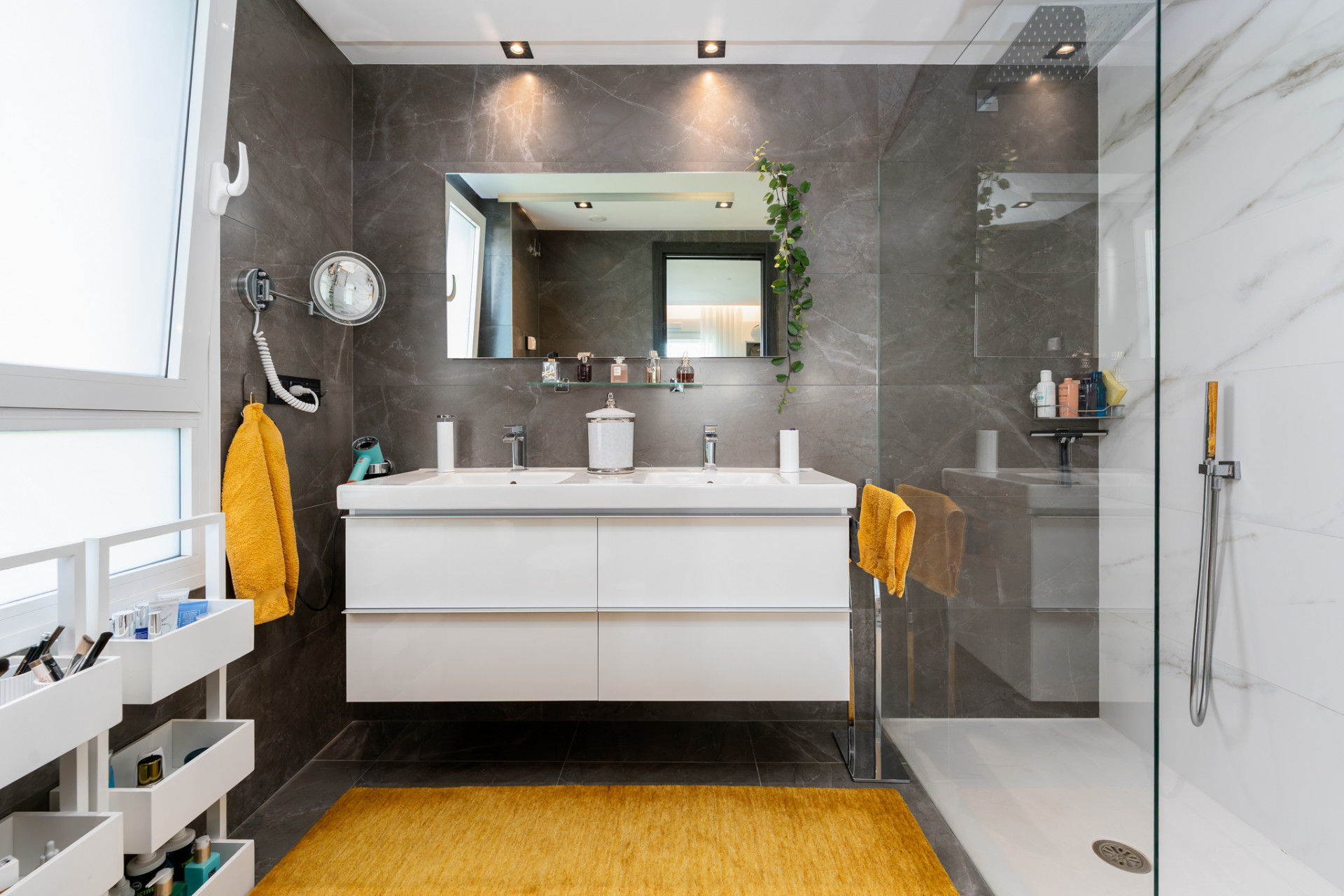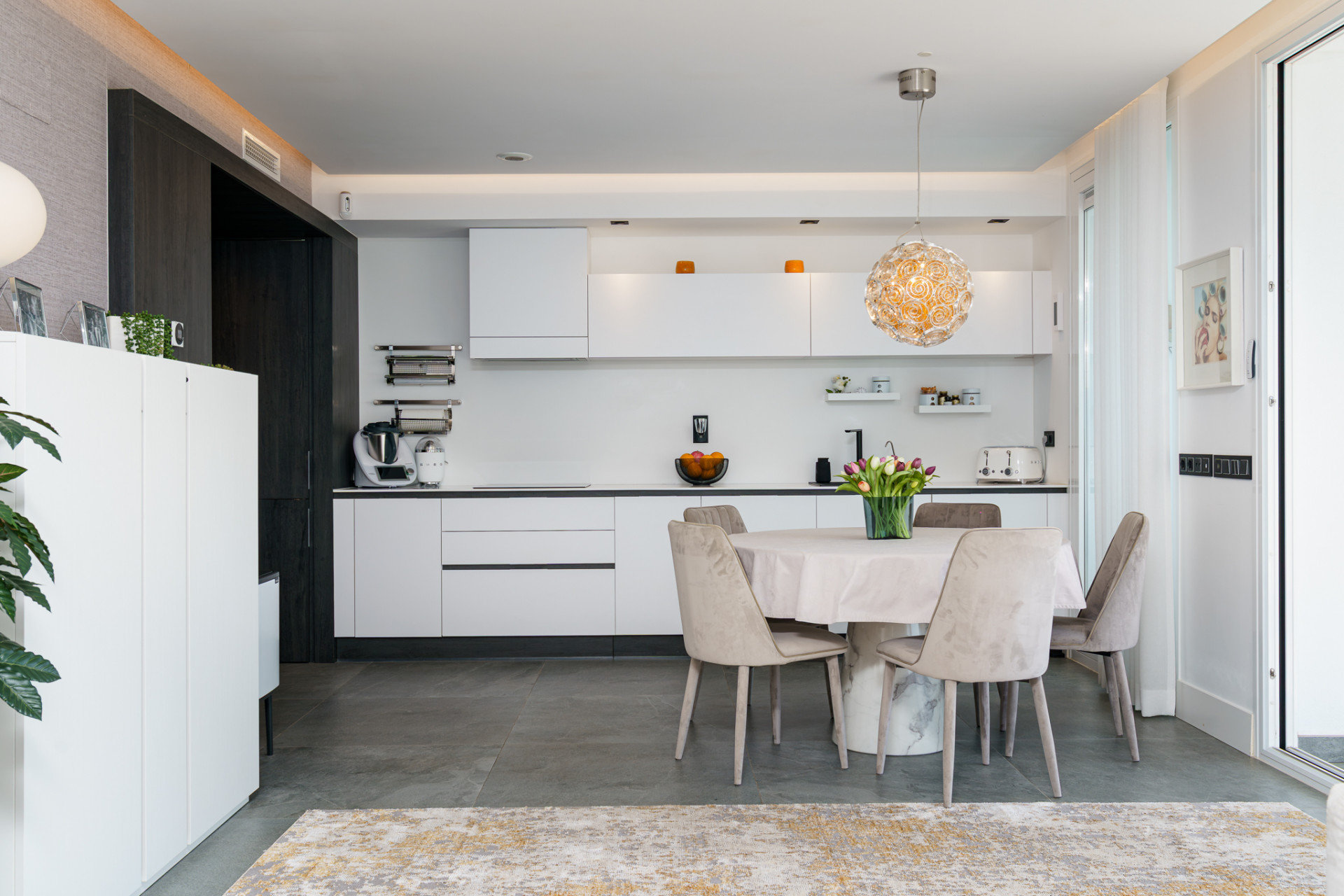 Hochwertige Ausstattungsmerkmale wie edle Holz- und Keramikböden, eine moderne Einbauküche mit Premium-Geräten sowie ein durchdachtes Beleuchtungskonzept schaffen ein Ambiente von Komfort und Eleganz.