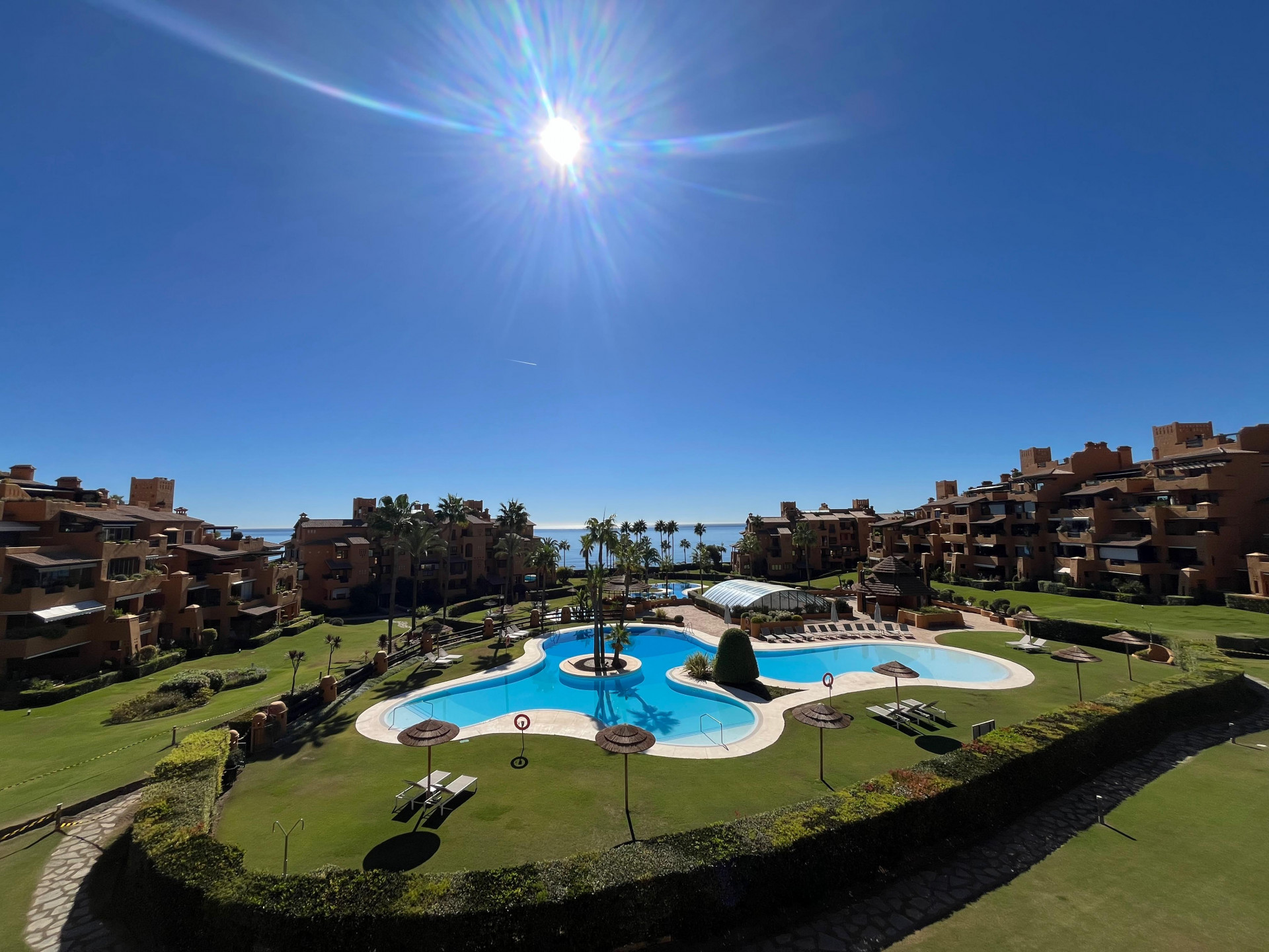 Los Granados del Mar zählt zu den exklusivsten Wohnanlagen an der New Golden Mile und bietet unvergleichliche Ausblicke auf das Mittelmeer. Die Kombination aus perfekt gepflegten subtropischen Gärten und luxuriösen Einrichtungen wie einem hauseigenen Restaurant, einem beheizten Innenpool, zwei Außenpools, Fitnessstudio, türkischem Bad, Sauna, Jacuzzi sowie 24-Stunden-Sicherheitsdienst macht diese Urbanisation zu einer der begehrtesten Adressen der Costa del Sol.