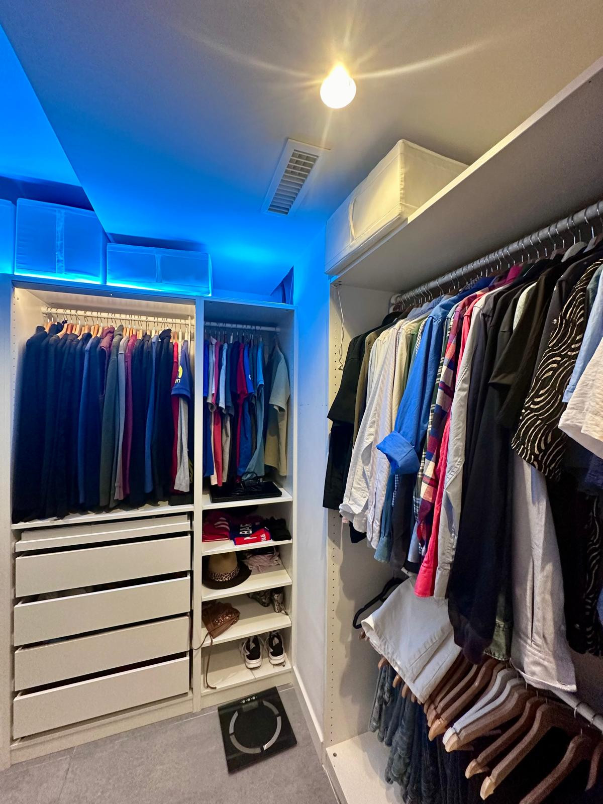 The master bedroom, super modern, has been divided into 2 parts; bathroom area, with shower, and separate sink area (his & hers).